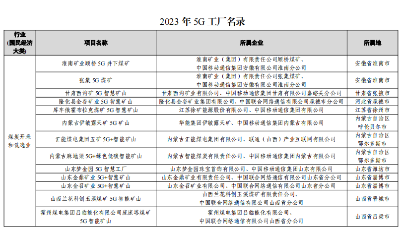 工信部《2023年5G工廠名錄》部分礦山和港口項目