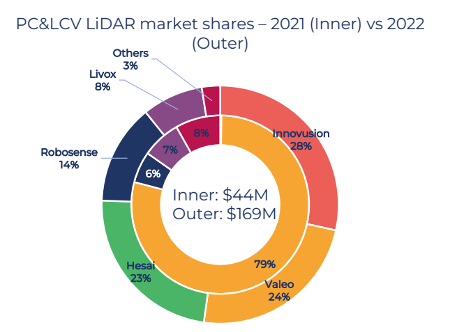 值得一提的是,國際權威研究機構Yole Intelligence發(fā)布的《2023年全球車載激光雷達市場與技術報告》,全面解讀了激光雷達技術與市場趨勢,報告顯示,2022年度Innovusion全球市場占有率大幅度超越21年預期,以全球第一的優(yōu)秀成績獲“乘用及商用車車載激光雷達市場”銷量和營收額的雙料冠軍