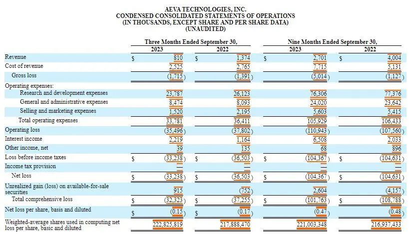 #04 Aeva第三季度凈虧損3323.8萬美元