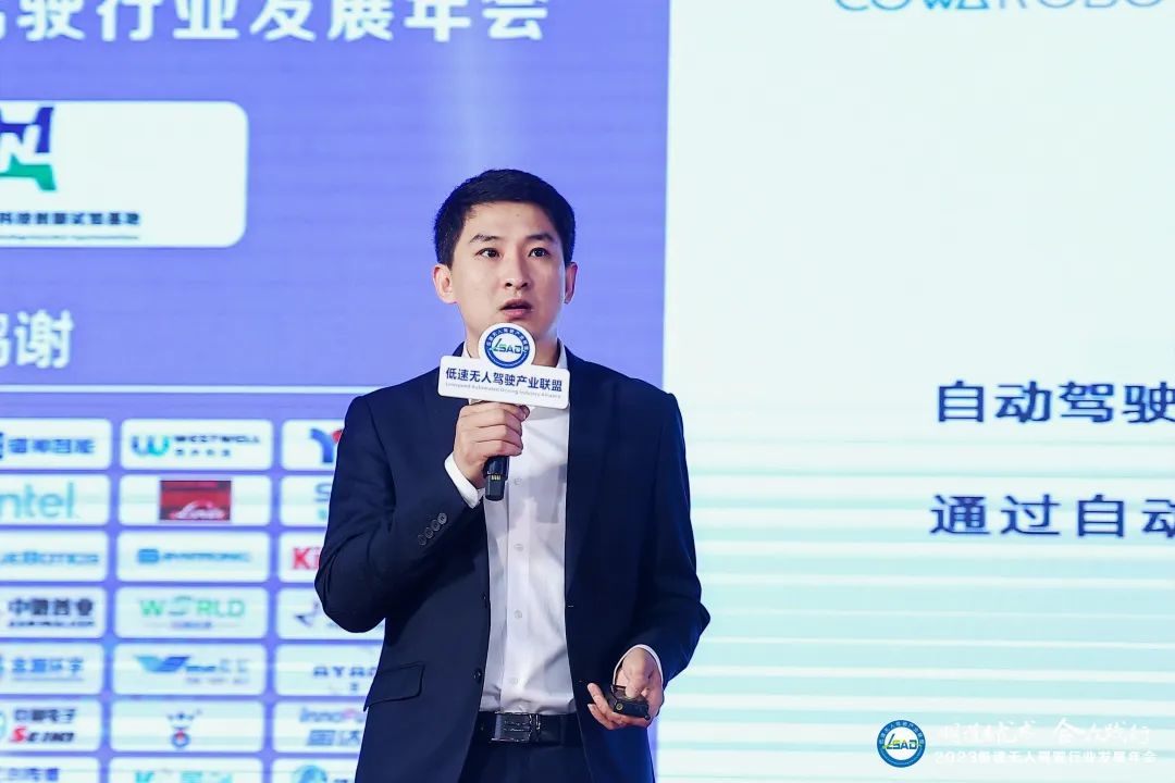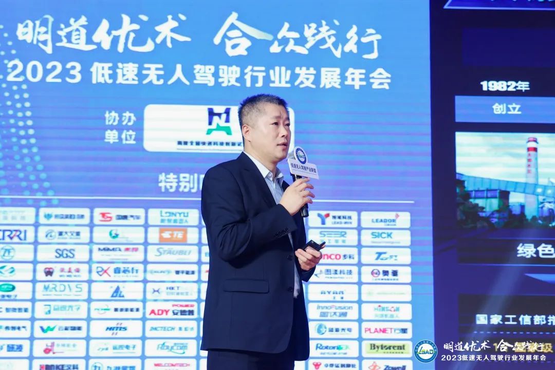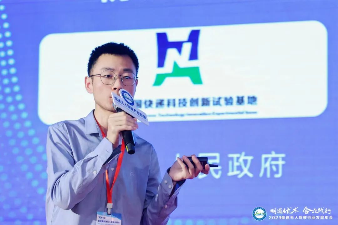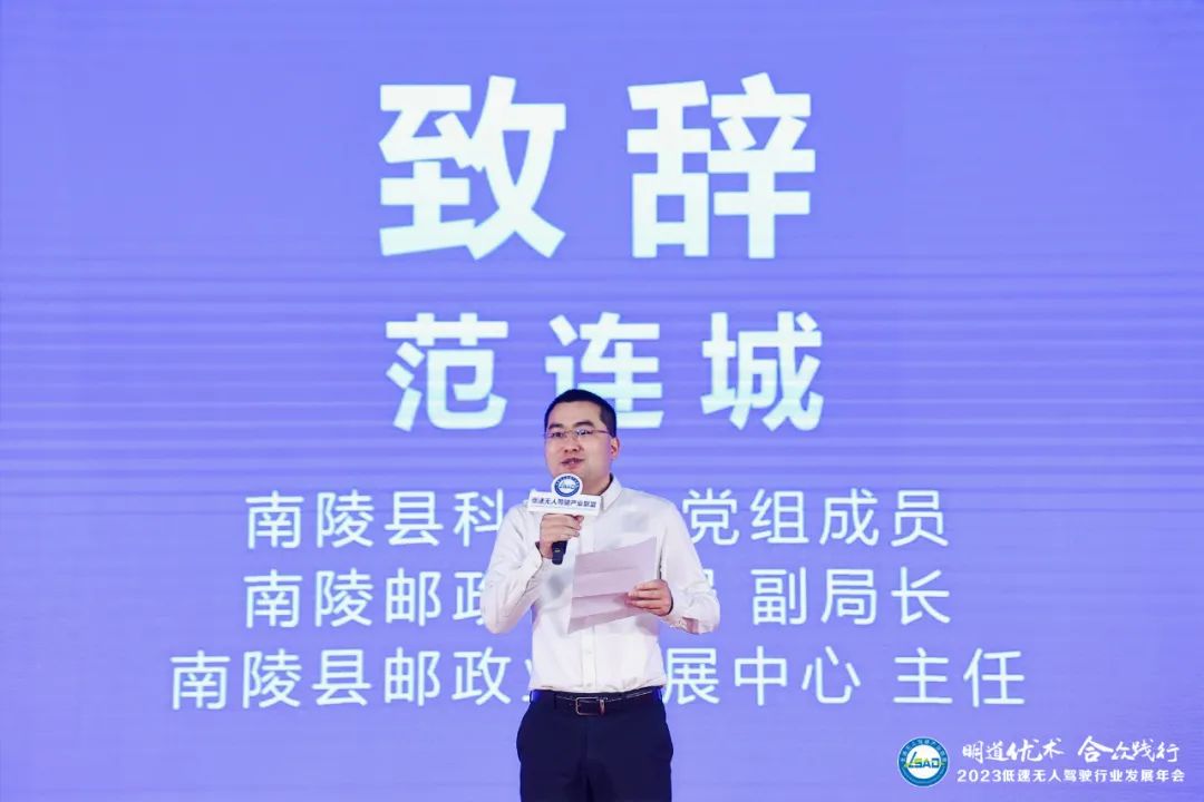 南陵縣科技局黨組成員、南陵郵政管理局副局長、南陵縣郵政業發展中心主任范連城致辭。范連城介紹,近年來,南陵搶抓新能源汽車產業發展機遇,打造快遞物流智能裝備特色優勢產業。在低速無人駕駛領域,南陵無人物流車在全國率先實現商業化運營,目前已有百余臺無人配送車在主城區開發道路上行駛,每天派送包裹達3萬件,是安徽省規模最大的無人車配送車車隊。同時,南陵出臺了《打造全城無人化應用示范城市實施方案》及配套扶持政策,打通無人化技術研發、場景示范、商業運營整體鏈條。