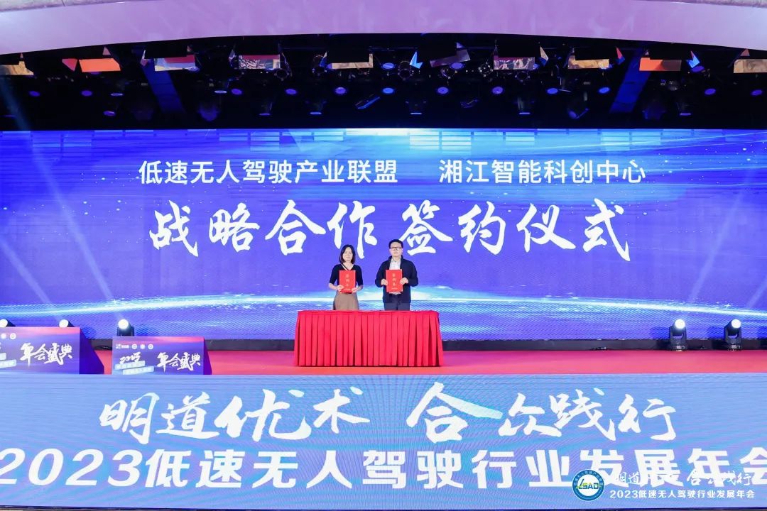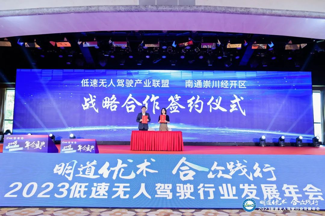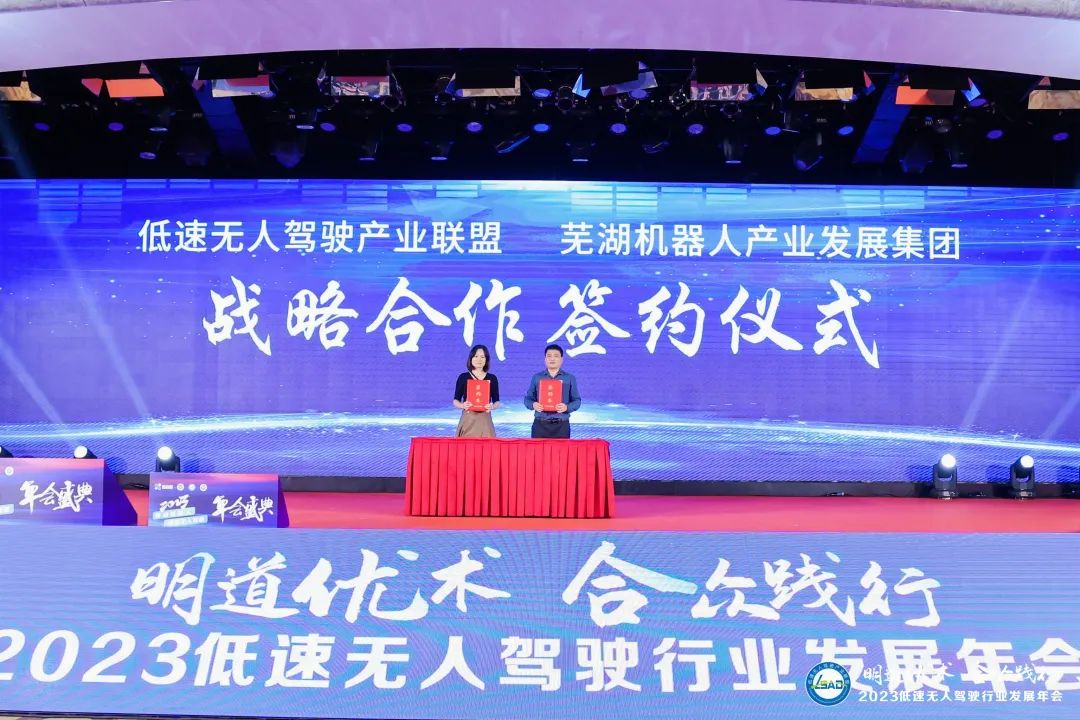 會上,低速無人駕駛產業聯盟分別與南通崇川經開區、昆山陸家鎮人民政府、蕪湖機器人產業發展集團、湖南湘江智能科創中心、青桐資本舉行戰略合作簽約儀式,加速拓展聯盟生態圈。