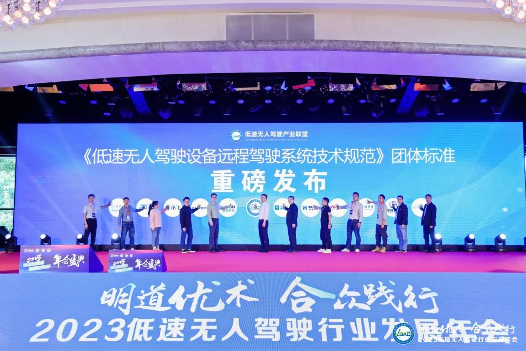 會上,《低速無人駕駛設備遠程駕駛系統技術規范》團體標準正式發布!該標準由斐視科技、名商科技、雷科智途、清華大學天津高端裝備研究院、福龍馬城服機器人、紐恩馳、智行未來、上海承飛起草,特斯聯科技集團、 上海聲網科技、山東蓬翔汽車、中科領航智能科技、斯年智駕參編。