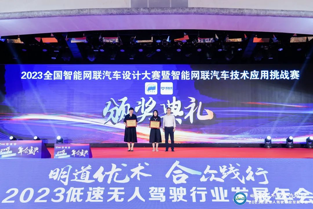 會上,“2023年全國智能網聯汽車設計大賽暨智能網聯汽車技術應用挑戰賽”賽項獲獎人員表彰儀式盛大舉行。大賽共有來自全國16所高校的29各團隊獲獎,低速無人駕駛產業聯盟秘書長、新戰略低速無人駕駛產業研究所所長李進科現場為獲獎高校團隊代表頒獎。