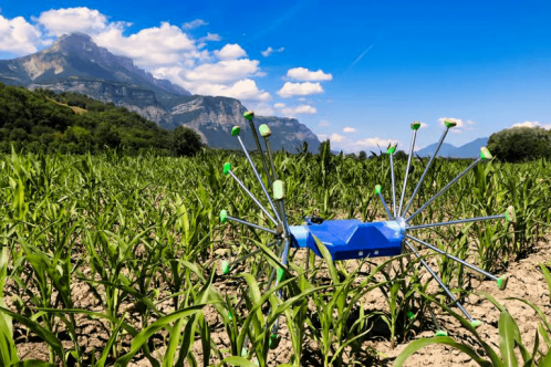 除了上述這一采用傳統(tǒng)橡膠軌道或輪胎包覆式車輪的機(jī)器人,這兩年來,還出現(xiàn)了采用無輪輞的開放式輻條輪的巡檢機(jī)器人。這一機(jī)器人名叫SentiV,由法國一家名為Meropy的公司研制。獨(dú)特的輪子結(jié)構(gòu)能夠幫助機(jī)器人應(yīng)對粗糙、不平坦的復(fù)雜地形,并在移動過程中盡量減少對農(nóng)作物的損害。此外,這種異形結(jié)構(gòu)的機(jī)器人重量為33磅(15公斤),每天能夠通過快速移動巡檢20公頃(49英畝),從而檢查農(nóng)作物的健康狀態(tài)。