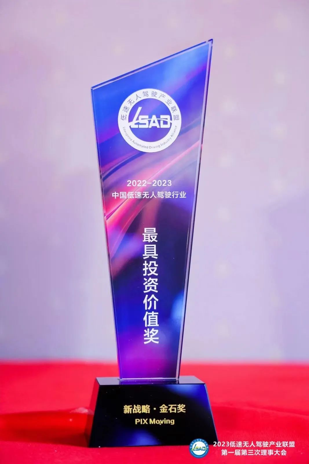 “2022-2023低速無人駕駛行業雙年度評選”活動特設創新產品獎、最佳供應鏈品質獎、最具投資價值獎、最具成長力價值獎。該屆評選活動中,PIX Moving 榮獲“最具投資價值獎”。