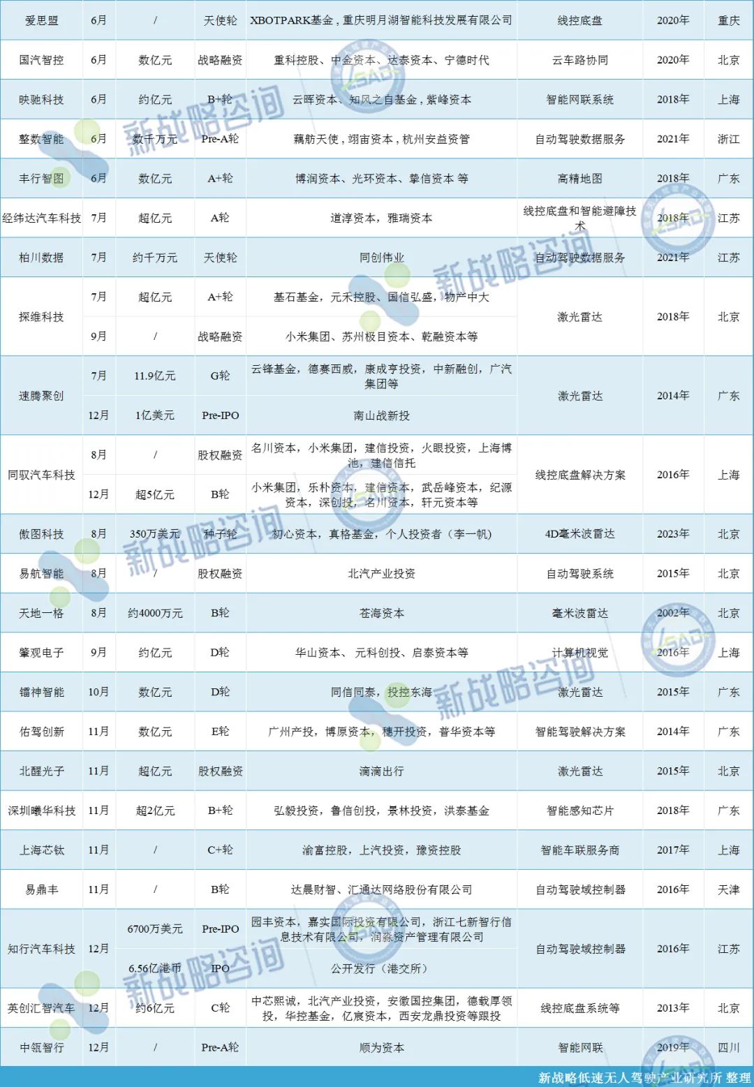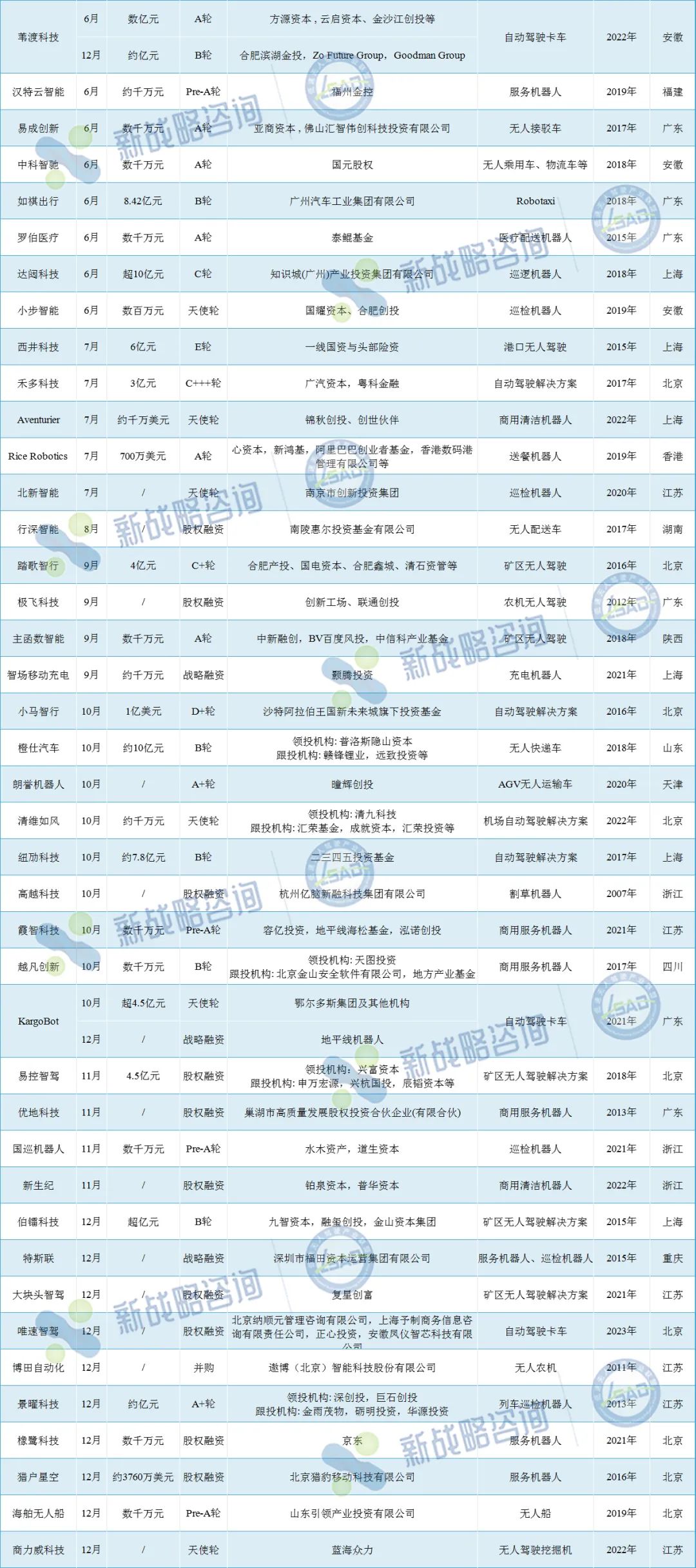 2023年國內(nèi)無人駕駛領(lǐng)域融資情況(據(jù)公開信息,新戰(zhàn)略低速無人駕駛產(chǎn)業(yè)研究所不完全整理)