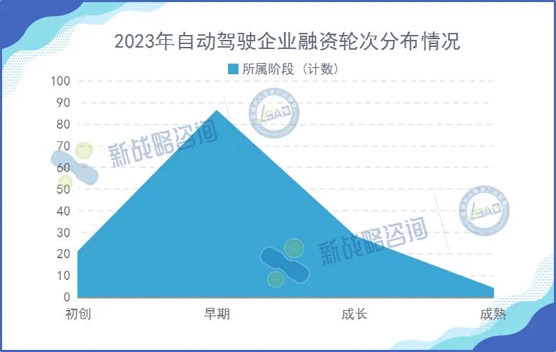 從融資輪次分布看,大部分企業(yè)融資均為早期階段融資。據(jù)新戰(zhàn)略低速無人駕駛產(chǎn)業(yè)研究所不完全統(tǒng)計(jì),2023年國內(nèi)披露的近140起融資,有86起均為早期階段融資,占比近62%。其次是成長階段融資,共28起、占比超20%。