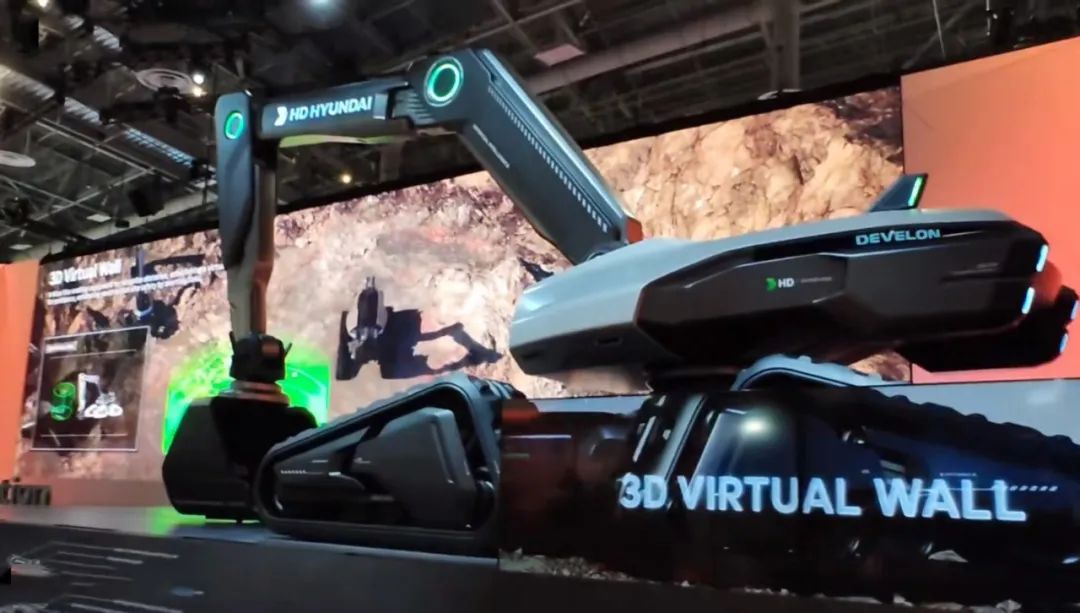 HD現代的展廳面積約為300平,由Future Xite 、Twin Xite 、Zero Xite三個主題組成。其中Future Xite,重點介紹了采用HD現代無人、自動化尖端技術的下一代建設現場的未來場景;Twin Xite重點介紹基于數字孿生技術的現場管制解決方案和遠程控制技術。現場展示的無人駕駛挖掘機是韓國現代智能建筑解決方案的核心產品之一。