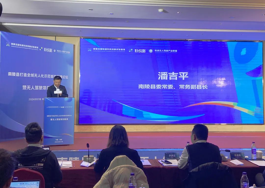 1月18日,由中共南陵縣委、南陵縣人民政府、低速無人駕駛產(chǎn)業(yè)聯(lián)盟主辦的“南陵縣打造全域無人化示范城市高峰論壇暨無人駕駛項(xiàng)目路演”在南陵順利舉行!本次活動重點(diǎn)聚焦低速場景的無人駕駛?cè)蛲茝V與應(yīng)用,南陵縣委、縣政府以及責(zé)任市直單位領(lǐng)導(dǎo)出席,并有來自智慧物流、城市安防、無人環(huán)衛(wèi)等領(lǐng)域的自動駕駛企業(yè)和終端用戶代表等上百人參會。