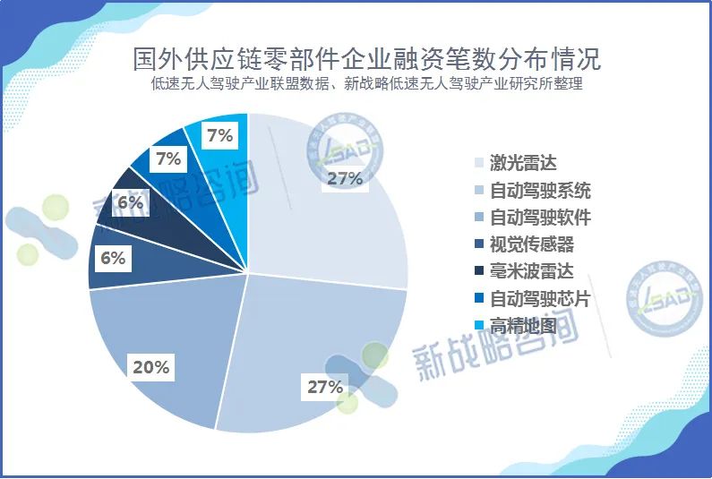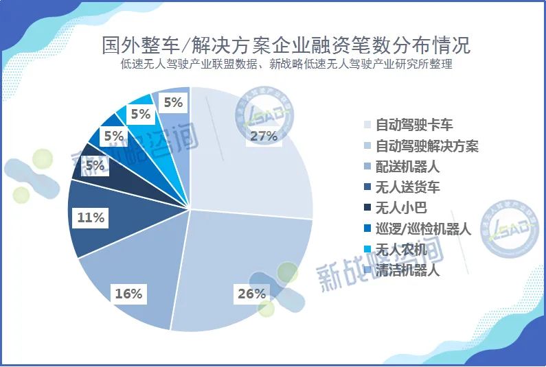 另外,從融資領域分布來看,整車企業以自動卡車企業披露的融資筆數和融資總額占比最高,5起自動駕駛卡車企業融資占比27%,總額約合人民幣超67億元。