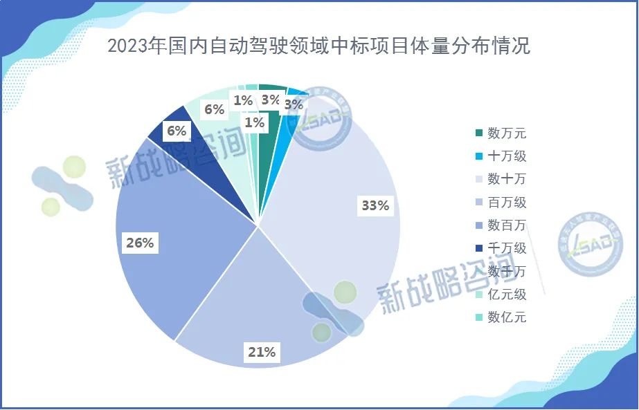 2023年國內自動駕駛領域中標項目體量分布情況(據公開信息,低速無人駕駛產業研究所不完全統計數據整理)
