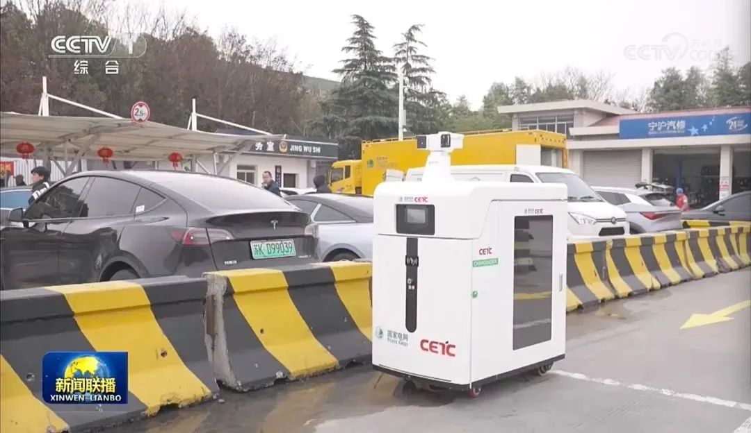 春節期間,由國網無錫電動汽車服務有限公司和中電海康無錫科技有限公司聯合研發的移動充電巡檢機器人:小微特機器人--充電巡檢機器人,出現在2月13日CCTV-1《新聞聯播》播出的《節能環保帶動綠色出行新風尚》中,可以看到CETC充電巡檢機器人助力春運期間高速服務區補能服務。不僅能充電,還能對現場環境進行測溫巡檢,異常預警,安全高效賦能補能行業。