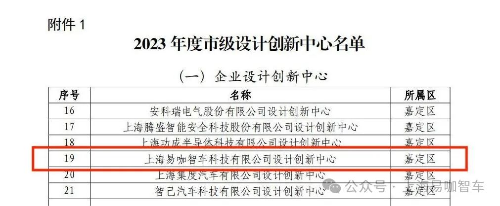 易咖智車獲得上海市“市級設(shè)計(jì)創(chuàng)新中心”認(rèn)定