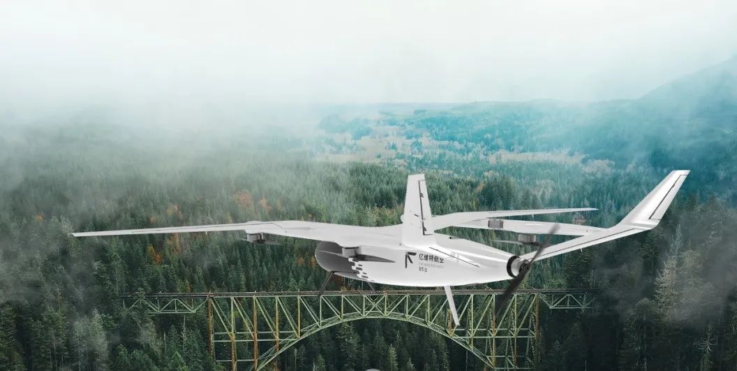 據(jù)悉,億維特研發(fā)設(shè)計(jì)的ET9是一款5人4座電動(dòng)垂直起降飛行器,最大起飛重量為2.2噸,采用全復(fù)合材料機(jī)體結(jié)構(gòu),飛機(jī)翼展近15米。ET3氫鋰混動(dòng)長(zhǎng)航時(shí)巡檢飛機(jī)翼展近3米,航程500公里以上,滯空時(shí)間長(zhǎng)、速度快,可以做到在超過(guò)3米寬的道路上隨時(shí)起降,執(zhí)行任務(wù)效率更高。