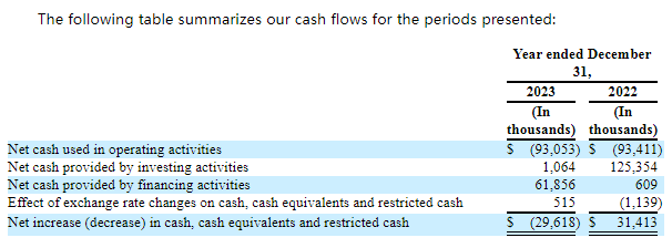 Innoviz 2023 年現金流增長情況(來源:美國證券交易委員會,單位以千計)