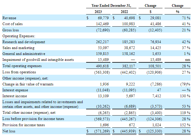 Luminar 2023 年經營業績報表(來源:美國證券交易委員會,單位以千計)