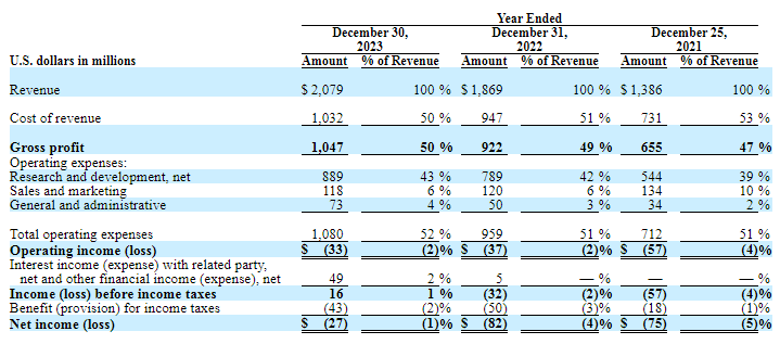 Aurora 2023 年經營業績報表(來源:美國證券交易委員會,單位以百萬計)