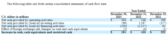 據了解,2023 年末,Mobileye 經營活動中提供的現金、現金等價物和受限制現金凈增加 1.91 億美元。