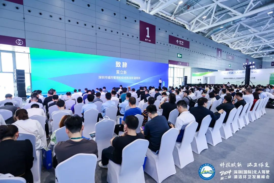 大會首先由深圳市城市管理和綜合執(zhí)法局副局長黃立新致辭。黃立新表示,城市治理要順應(yīng)科技浪潮發(fā)展,深圳具有領(lǐng)先的人工智能技術(shù)資源和創(chuàng)新環(huán)境,也是全國環(huán)衛(wèi)服務(wù)市場化改革的發(fā)源地。接下來深圳將持續(xù)發(fā)揮先鋒作用和領(lǐng)先優(yōu)勢,促進人工智能與環(huán)衛(wèi)需求深度融合,讓全域環(huán)衛(wèi)機器人作業(yè)成為新常態(tài),打造全國無人環(huán)衛(wèi)新技術(shù)、新產(chǎn)品、新模式創(chuàng)新應(yīng)用先導區(qū)。