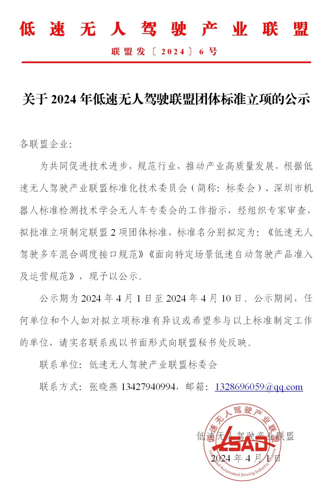 2024年聯盟持續推進標準體系完善工作,經標委會研究決定,擬批準立項制定《低速無人駕駛多車混合調度接口規范》和《面向特定場景低速自動駕駛產品準入及運營規范》2項團體標準。其中《面向特定場景低速自動駕駛產品準入及運營規范》(擬定名)將由福龍馬城服機器人科技有限公司牽頭。