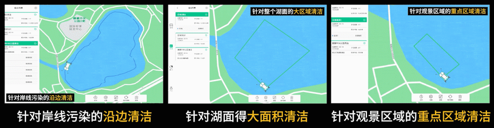 結(jié)合水域污染周期性和覆蓋位置,歐卡智舶團(tuán)隊根據(jù)調(diào)研結(jié)果并結(jié)合客戶實際訴求,設(shè)定了三條清潔路線,分別為圍繞湖區(qū)沿邊清潔和兩個重點(diǎn)區(qū)域清潔。