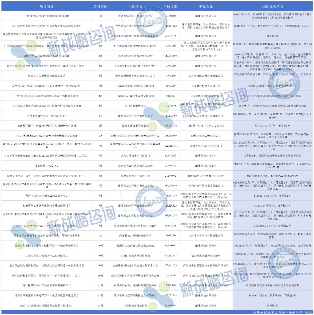 2024年無人環(huán)衛(wèi)領(lǐng)域部分中標(biāo)項目匯總