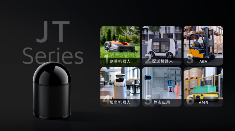 迷你型超半球3D激光雷達JT系列,擁有全球最廣的360° x 187°超半球視野,最高支持256線,能夠提供零盲區的三維環境感知,底部直徑最小只有55毫米,身高約68毫米,通過隱蔽式嵌入安裝,視窗露出高度不超過30毫米,重量也只有200-250克。適用于服務機器人、配送機器人、清掃機器人以及割草機器人等多個應用領域。