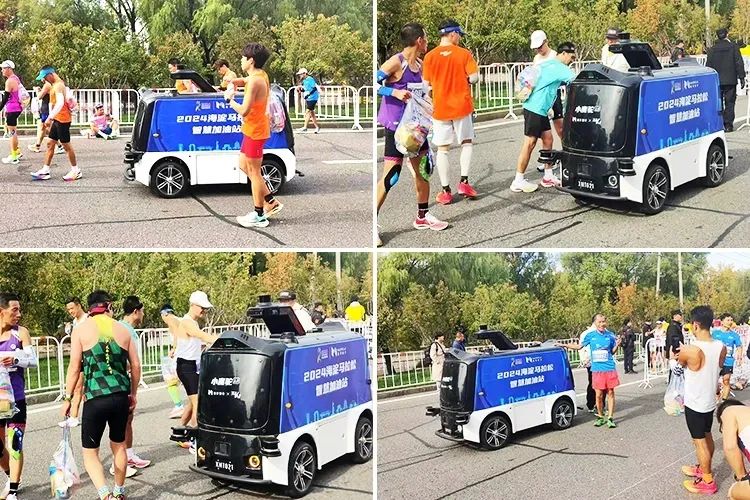2024年10月,2024北京海淀馬拉松現場,毫末小魔駝2.0貨艙里裝滿了飲用水,在馬拉松的起點、終點及40公里處,化身“志愿者”循環送水。