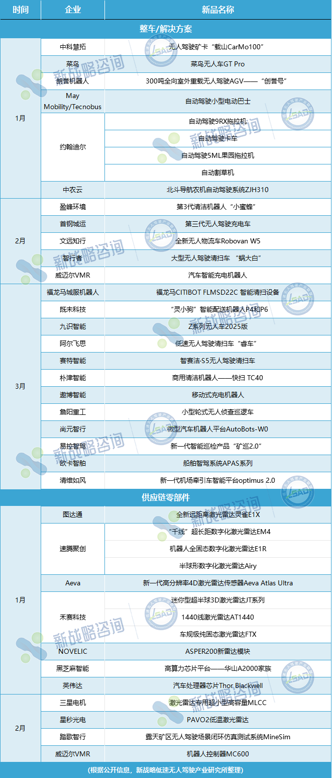 2025年第一季度度部分無人駕駛領域新品(未完善之處請指正)