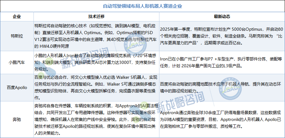 布局人形機器人賽道的自動駕駛代表企業