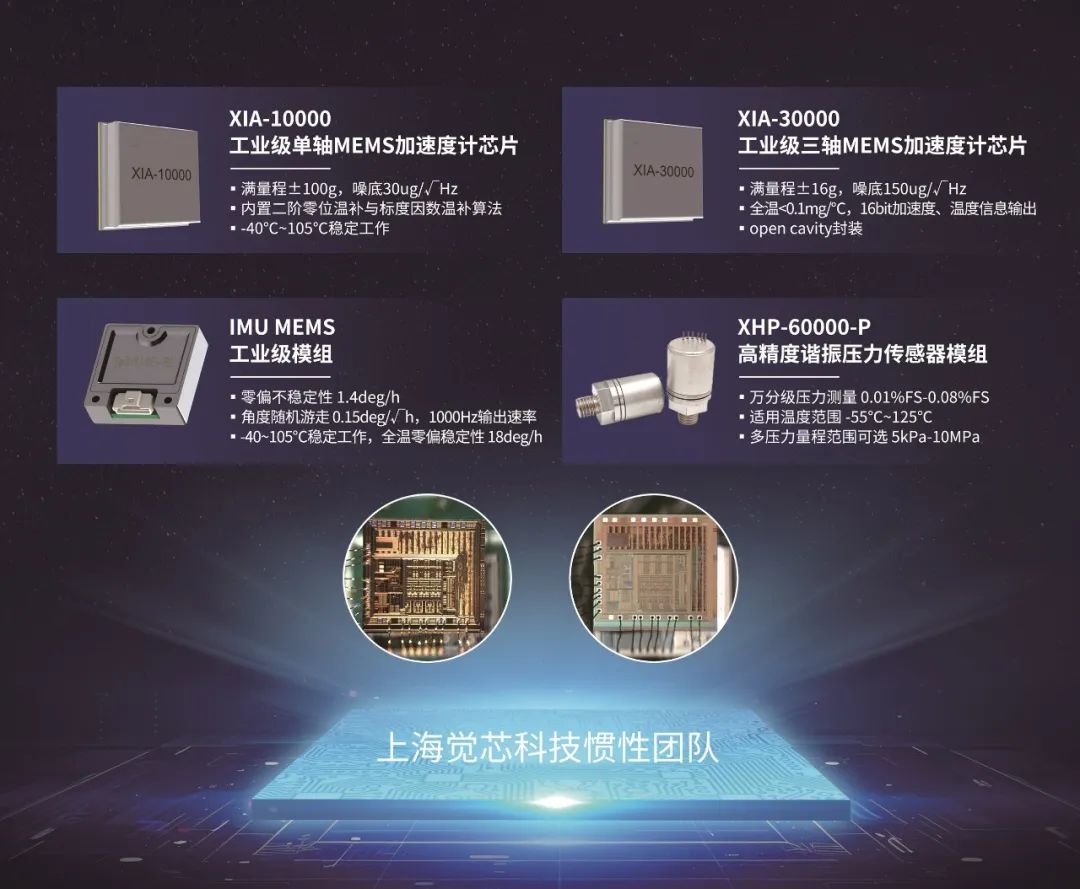 在此次車展,上海覺(jué)芯科技展示了多款明星產(chǎn)品。其中,高精度單軸MEMS陀螺儀芯片XHG-20000、工業(yè)級(jí)單軸MEMS加速度計(jì)芯片XIA-10000以及工業(yè)級(jí)三軸MEMS加速度計(jì)芯片XIA-30000,以其卓越的性能和穩(wěn)定的質(zhì)量,吸引了眾多專業(yè)觀眾的關(guān)注。此外,工業(yè)級(jí)六軸IMU模組Spirit10B-CT/Spirit10E-RL和高精度壓力傳感器XHP-60000-P也憑借其獨(dú)特的技術(shù)優(yōu)勢(shì)和應(yīng)用場(chǎng)景,成為了車展上的亮點(diǎn)。