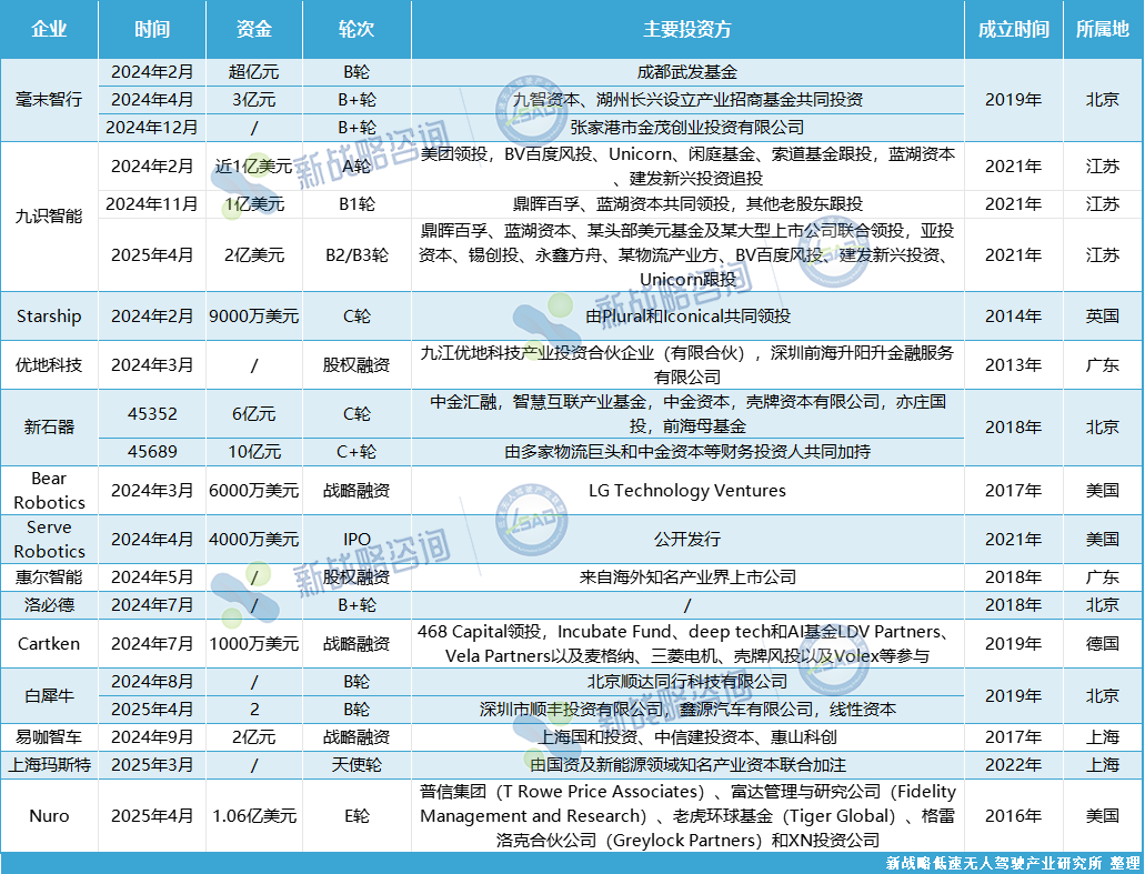 2025年被視為自動駕駛關鍵年,無人配送賽道資本加持力度更是空前,單筆投資金額突破10億級、融資頻率也在加快。
