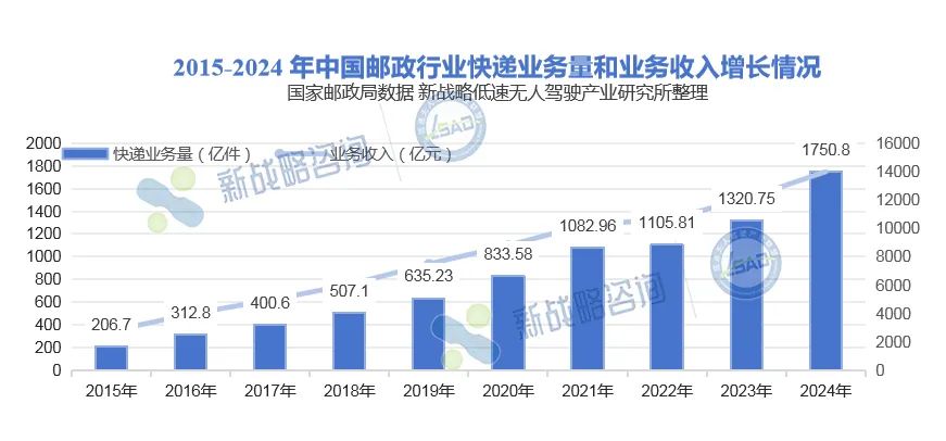 僅按照每個營業(yè)網(wǎng)點標(biāo)配2臺無人車測算,市場需求就已經(jīng)超100萬臺。事實上,目前很多網(wǎng)點的采購需求遠(yuǎn)不止2臺。如南陵縣郵政分公司投入35輛無人配送車、余杭西部鎮(zhèn)街共配中心批量投用了34臺無人配送車等等。