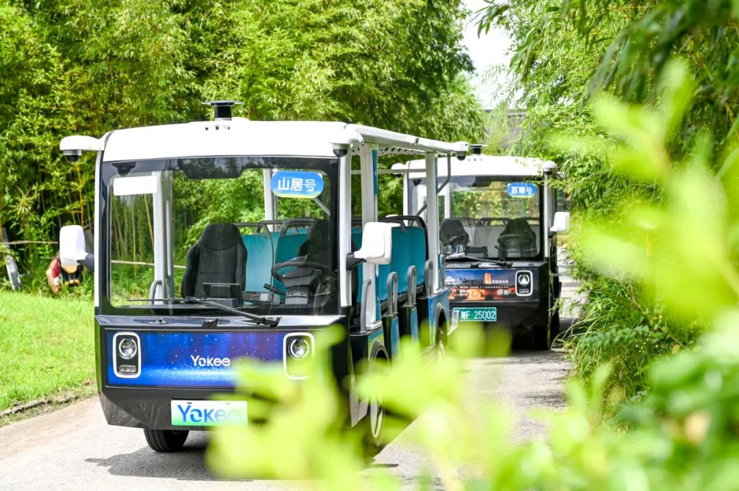 在百翠山居莊園的實景演示中,Yokee 01無人駕駛觀光車展示了復雜環境下的可靠性能。車輛搭載多傳感器融合系統,在竹林窄道與陡坡彎角實現厘米級定位與動態避障。現場實測數據顯示,在高峰時段,車輛調度效率提升40%,游客平均候車時間縮短至5分鐘以內,并且可以實現度假村24小時接待能力。