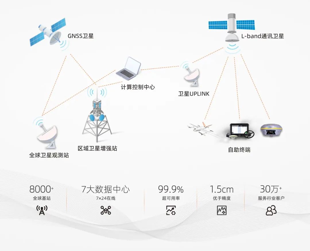 PointX全球星地一體衛星增強服務——依托全球8000+基站網絡,實現全球主要經濟體覆蓋,并支持衛星和移動網絡雙路播發,為全球客戶提供厘米級定位增強服務;