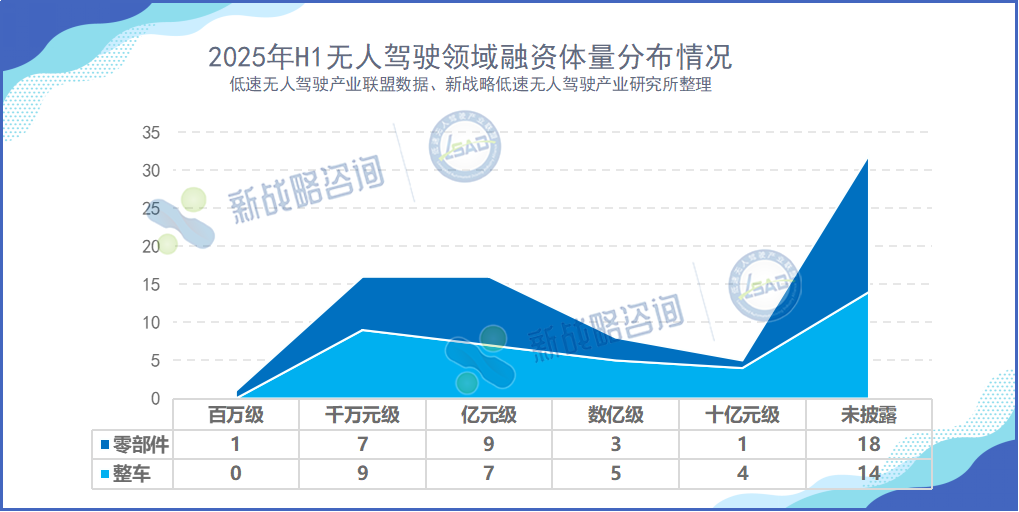 據新戰略低速無人駕駛產業研究所不完全統計,2025年上半年,國內無人駕駛領域公開近80起重要投融資,披露的融資總額超135億元人民幣(包括IPO募資)。