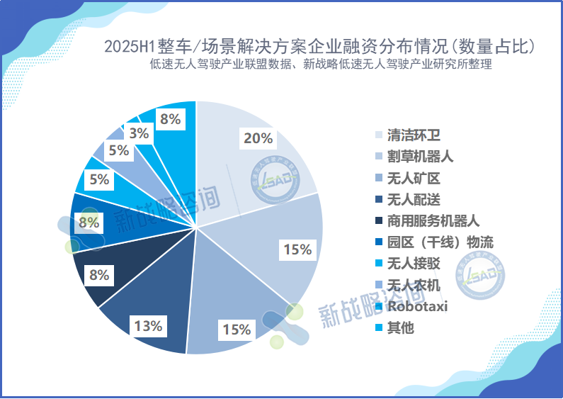 從融資領域來看,國內35家整車/場景解決方案企業獲得融資超95億元,其中清潔環衛領域的企業占比最高,共8家企業融資近12億元。這些企業將利用最新融資,加大技術研發投入,并在全國各地政府支持下大范圍推廣無人駕駛清潔設備的投用。