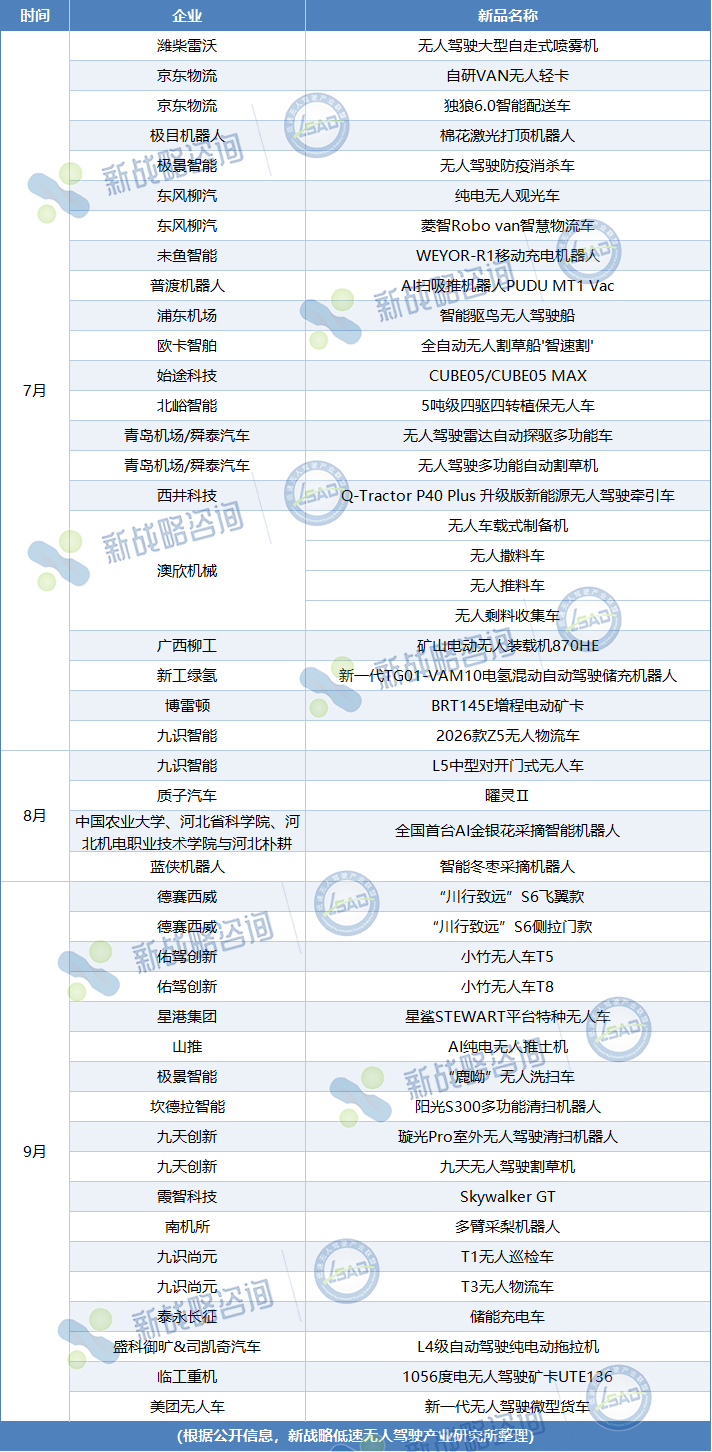 2025年第三季度部分無人車新品(未完善之處請指正)