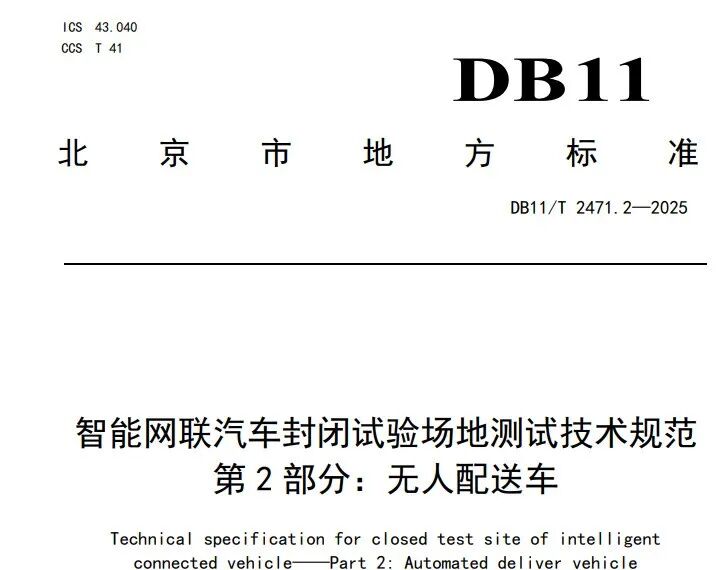 近日,北京市市場監(jiān)督管理局發(fā)布了4項自動駕駛領域地方標準,涉及智能網聯汽車封閉試驗場地測試、車路云一體化路側基礎設施兩大核心領域,包括《智能網聯汽車封閉試驗場地測試技術規(guī)范 第1部分:乘用車》《智能網聯汽車封閉試驗場地測試技術規(guī)范 第2部分:無人配送車》《車路云一體化路側基礎設施 第6部分:信息安全技術要求》《車路云一體化路側基礎設施 第7部分:運維管理系統(tǒng)應用技術要求》。
