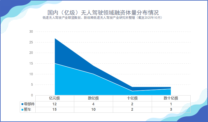 總的來看,2025年以來,國內低速無人駕駛領域融資呈現‘頭部集中、場景為王’的鮮明特征,無人配送與礦區場景成為資本押注的主戰場,且中后期項目更易獲得大額加持。