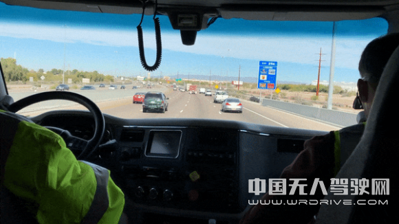 路線:這次選取了一條圖森辦公室往市區(qū)駛?cè)朐俪龀欠祷氐穆肪€,全長65英里——100公里左右,最高限速65英里/小時(104.6公里/小時),途徑郊區(qū)道路、I 10高速、匝道、城區(qū)道路、火車道口,以及臨時施工路段。