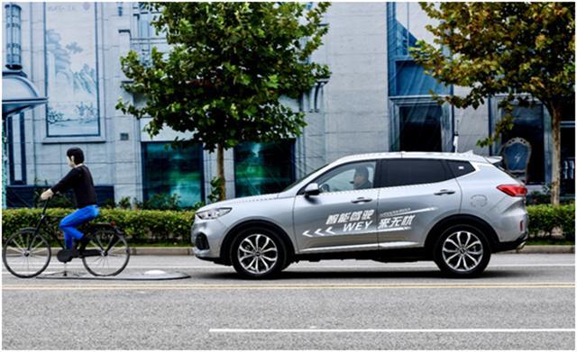 在上海安亭的國家智能網(wǎng)聯(lián)汽車(上海)試點示范區(qū)實際試駕時,WEY VV6行駛至十字路口,汽車、行人及自行車模擬裝置突然進入,AEB主動式緊急制動系統(tǒng)觸發(fā)并完美規(guī)避風(fēng)險,它可識別車輛、行人、自行車。