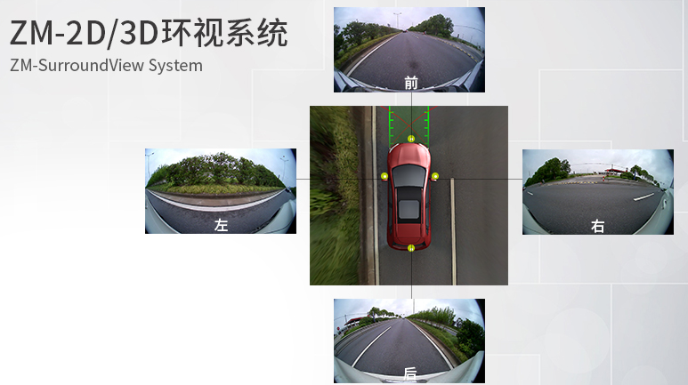 2D/3D 360°全景泊車,將環視系統中安裝在車身前后左右的四個魚眼相機所采集的視頻經過圖像處理單元進行畸變矯正,視角變換后,拼接為一個完整的全景視頻實時輸出給車內的中控屏幕。全景泊車系統可以在駕駛員泊車過程中提供車身周圍無盲區的視頻效果,駕駛員可以直觀地看到車輛所處的位置以及車輛周圍的障礙物,從容操控車輛泊車入位或通過復雜路面,有效減少刮蹭、陷落、碰撞等事故的發生。
