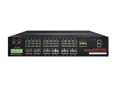 24端口千兆電+4個萬兆SFP+擴展槽, Layer3 工業以太網交換機,支持策略路由,模組式 |